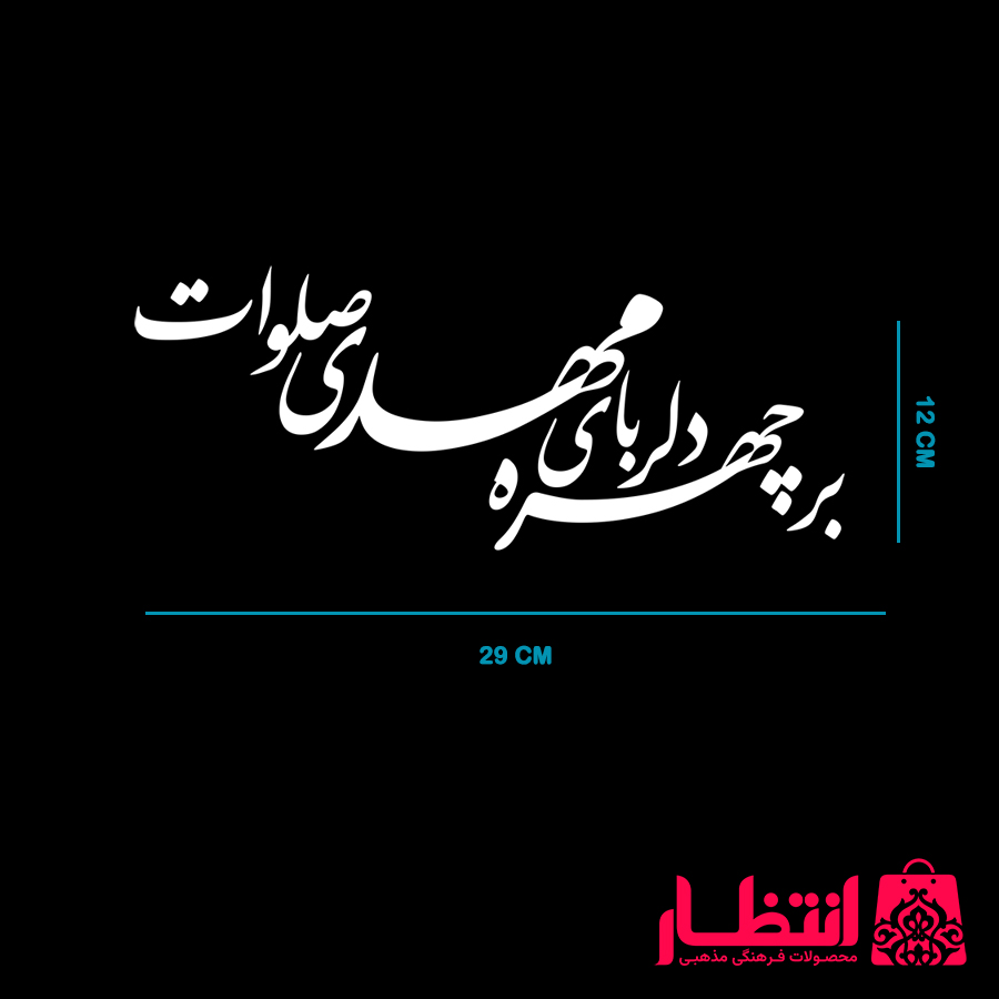 برچسب ماشین بر چهره دلربای مهدی صلوات از جنس ورق PVC (پلی وینیل کلراید یا پی‌ وی‌ سی) است. طرح موردنظر با دقت بسیار بالایی توسط دستگاه کاتر پلاتر برش خورده این برچسب در رنگ سفید عرضه می‌شود. و ابعاد آن 12×29 سانتی‌متر است. این محصول تولید اختصاصی فروشگاه فرهنگی مذهبی انتظار می باشد.
