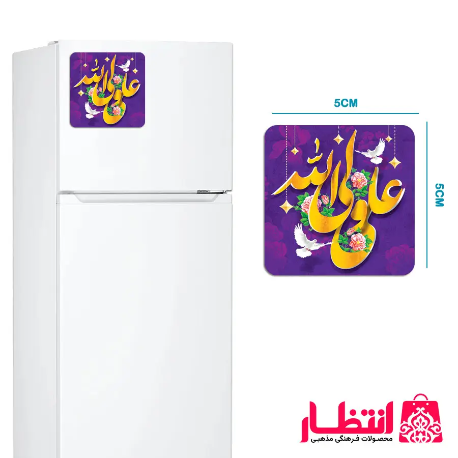 مگنت یخچال طرح علی ولی الله جنس این محصول از نوع مگنت لاستیکی در ابعاد 5×5 سانتیمتر میباشد. که میتوان آن را روی سطوح فلزی مانند درب یخچال، درب کمد و… قرار دارد. شما میتوانید از این مگنتها به عنوان هدیه در روز عید غدیر خم استفاده کنید.