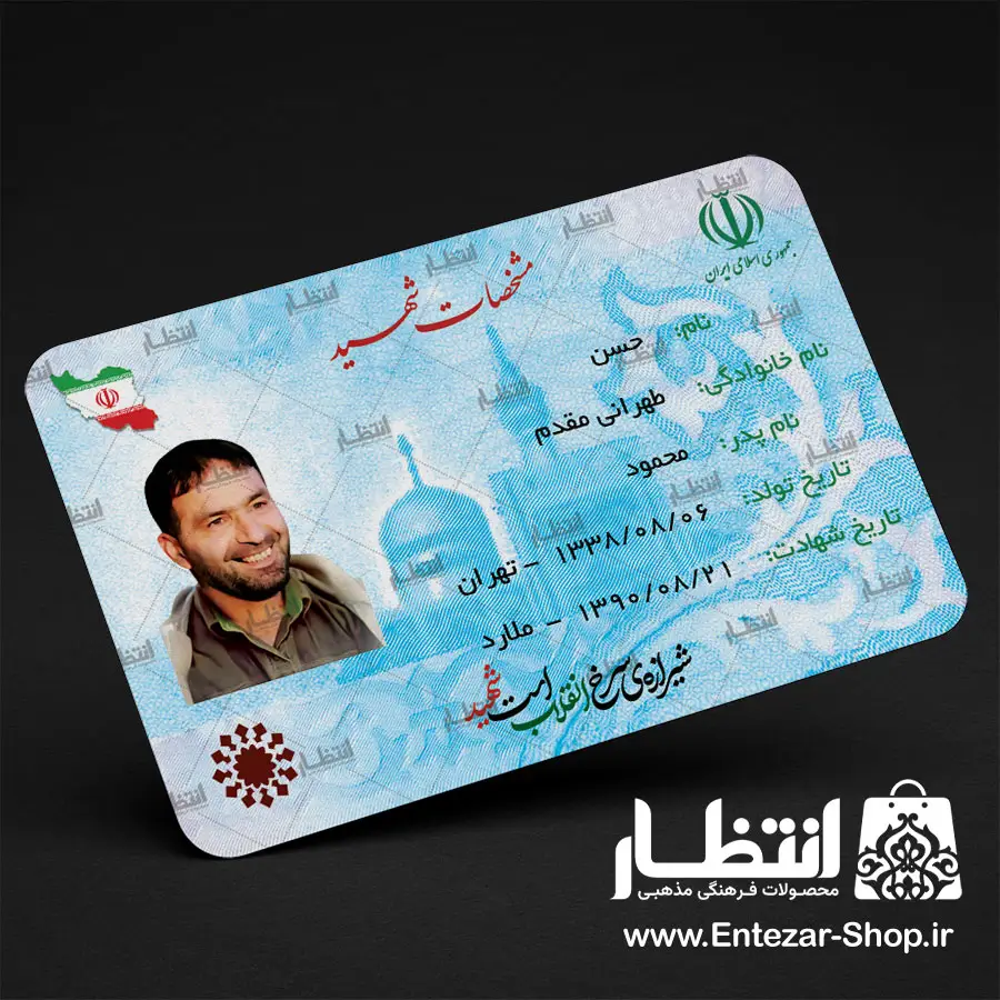 طرح روی آن به صورت کارت ملی همراه با مشخصات فردی شهید حسن طهرانی مقدم طراحی گردید. و قسمت پشت این کارت ملی شامل بخشی از وصیتنامه شهید حسن طهرانی مقدم میباشد. این محصول جذاب و خاطره انگیز را میتوانید در راستای ترویج فرهنگ شهدا به دوستان خود هدیه دهید و یا آن را در کنار کارت ملی خود نگهداری نمایید.